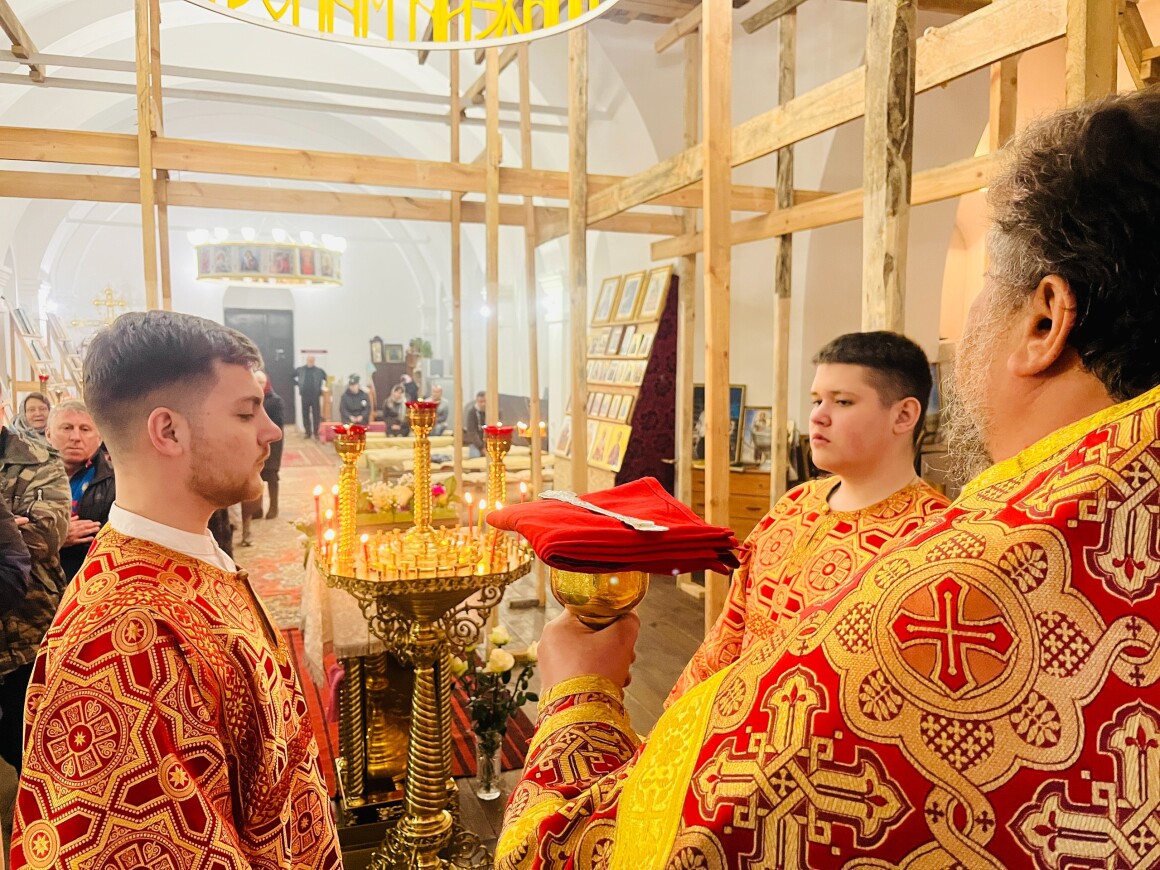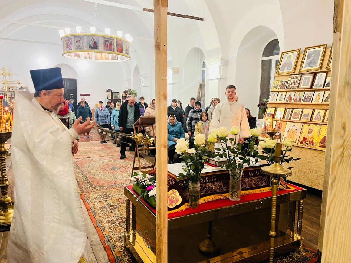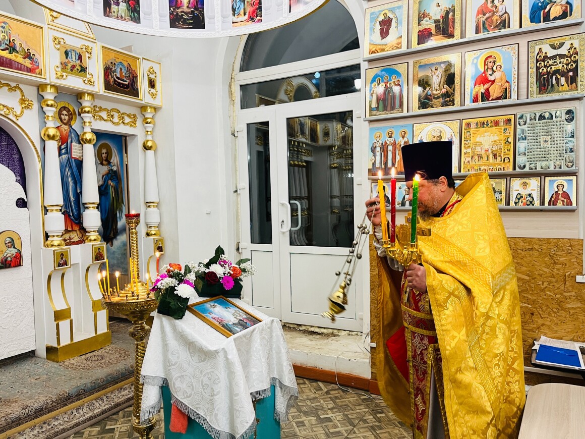 12.04.2025 год. Суббота. Вечер на кануне Вход Господень в Иерусалим в Храме Архангела Михаила совершили Вечернее Богослужение.
