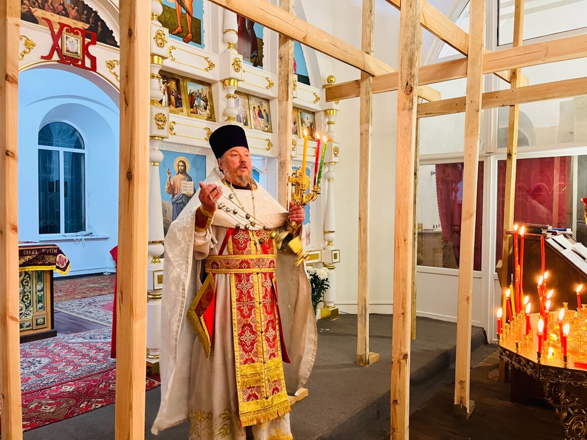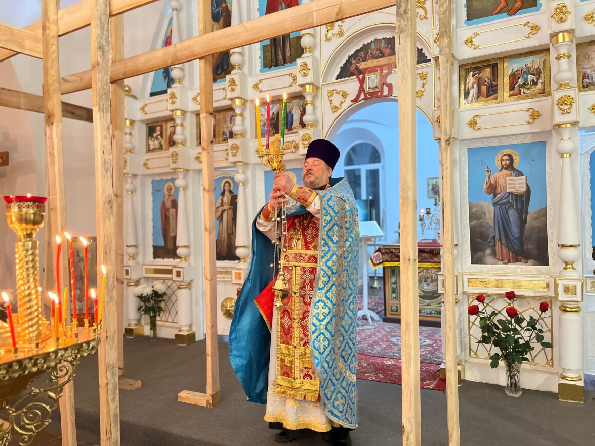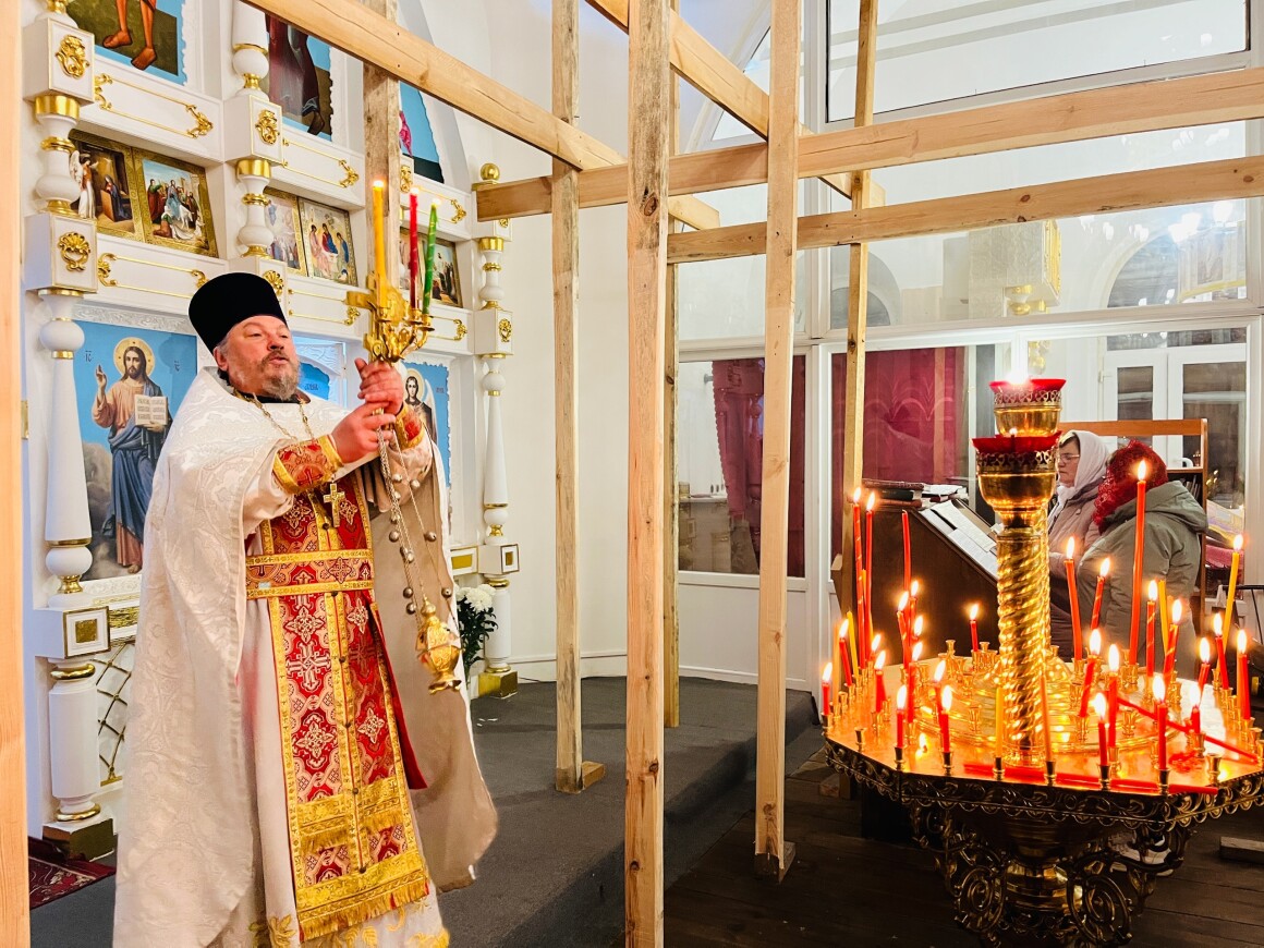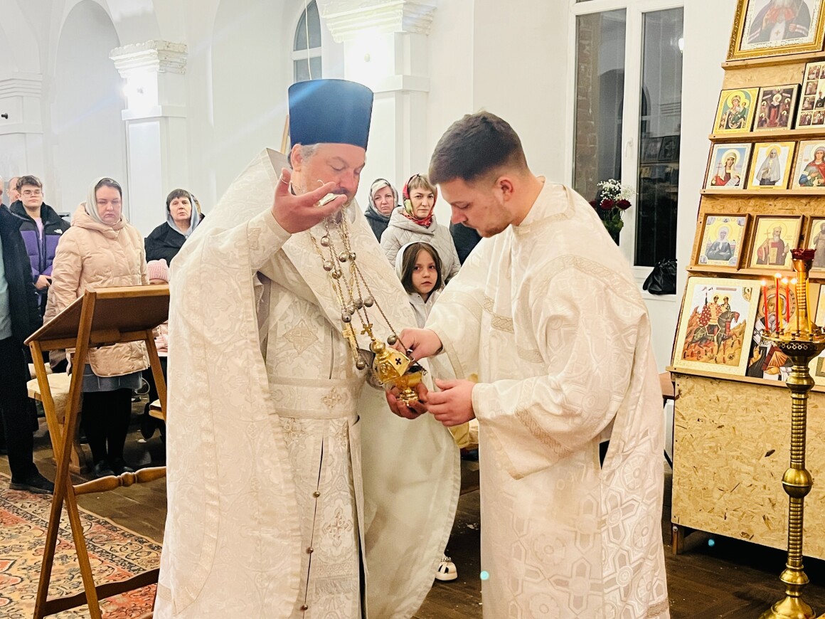 12.04.2025 год. Суббота. Вечер на кануне Вход Господень в Иерусалим в Храме Архангела Михаила совершили Вечернее Богослужение.