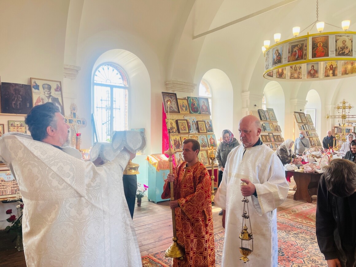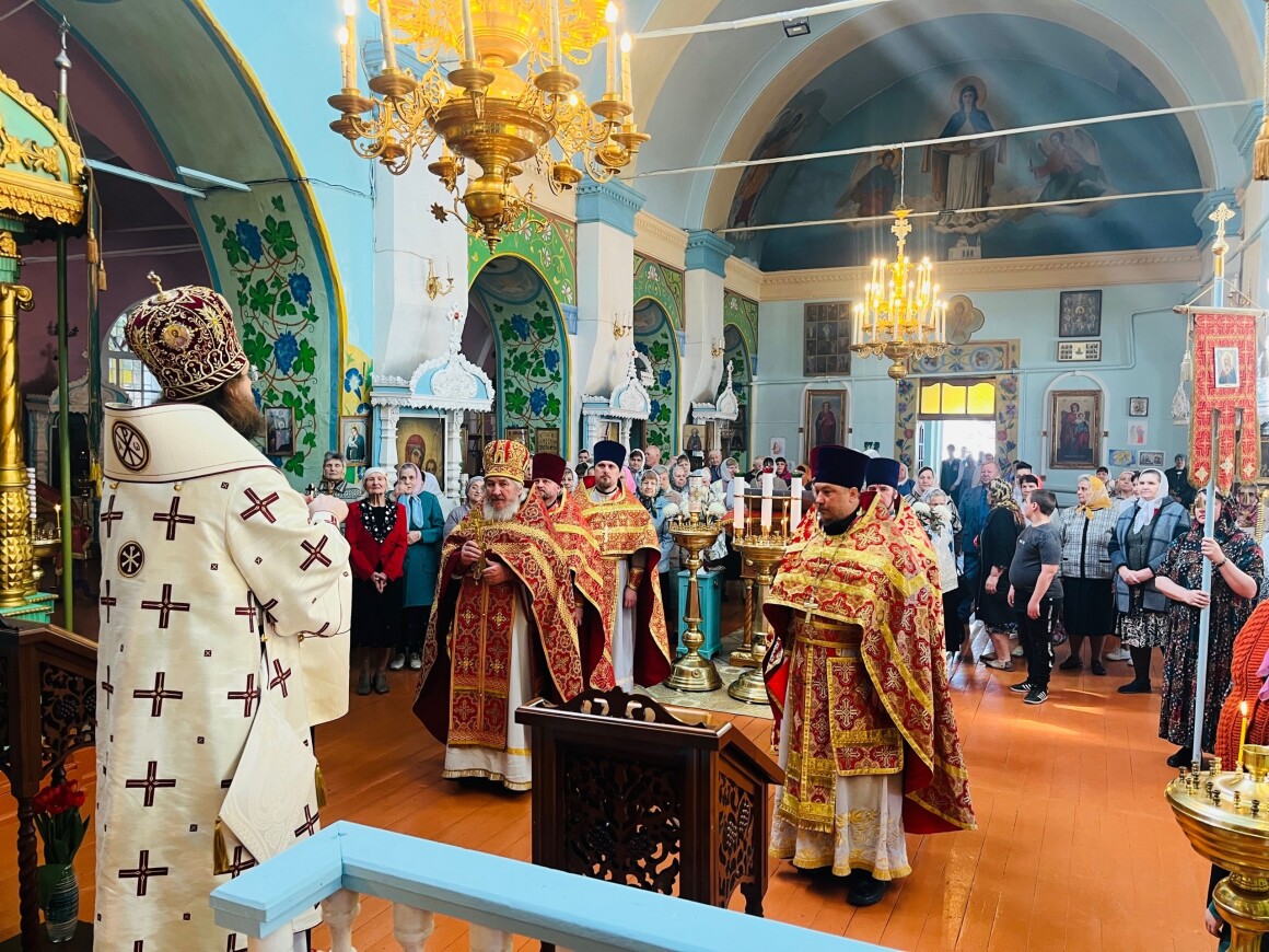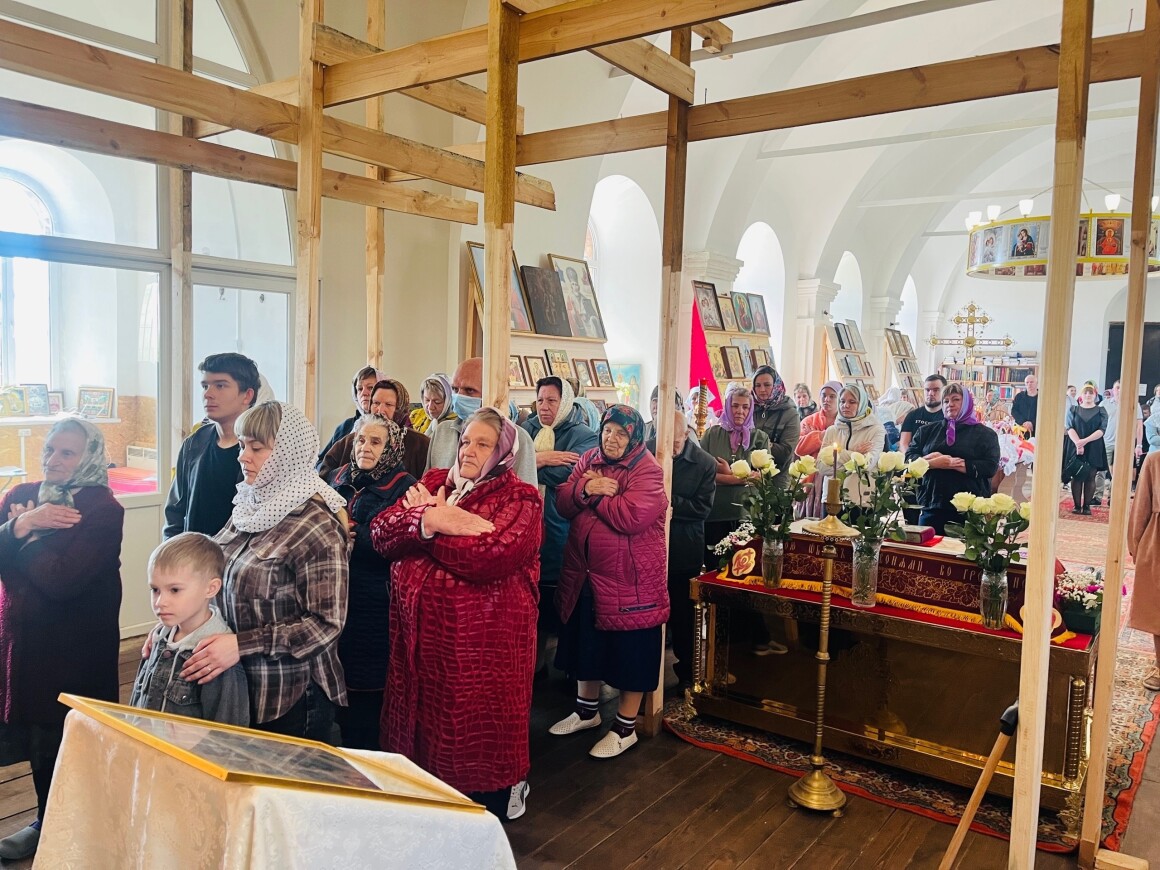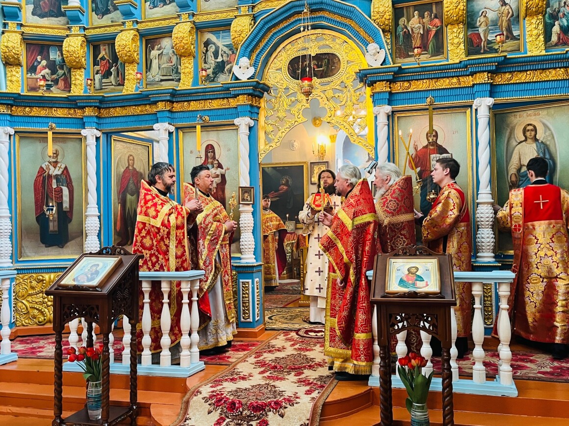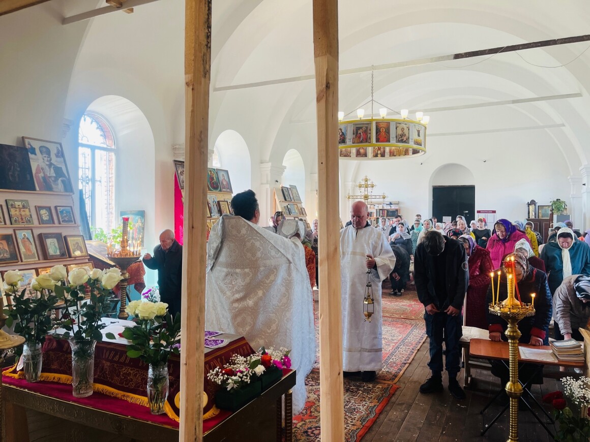 23.04.2025 год. ХРИСТОС ВОСКРЕСЕ Архиерейское богослужение в Успенском храме п. Касторное в среду Светлой седмицы.