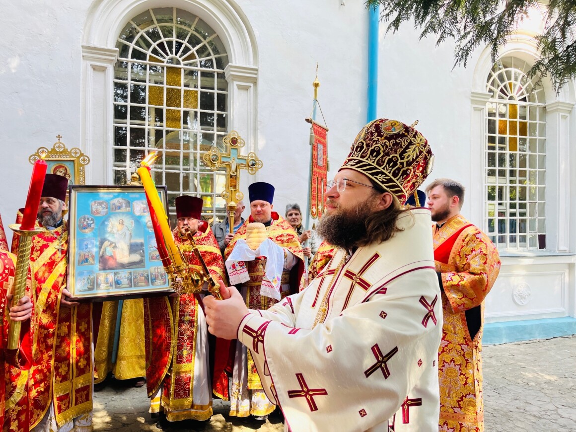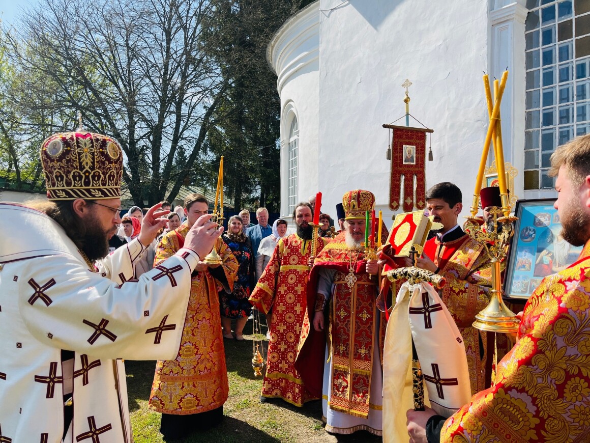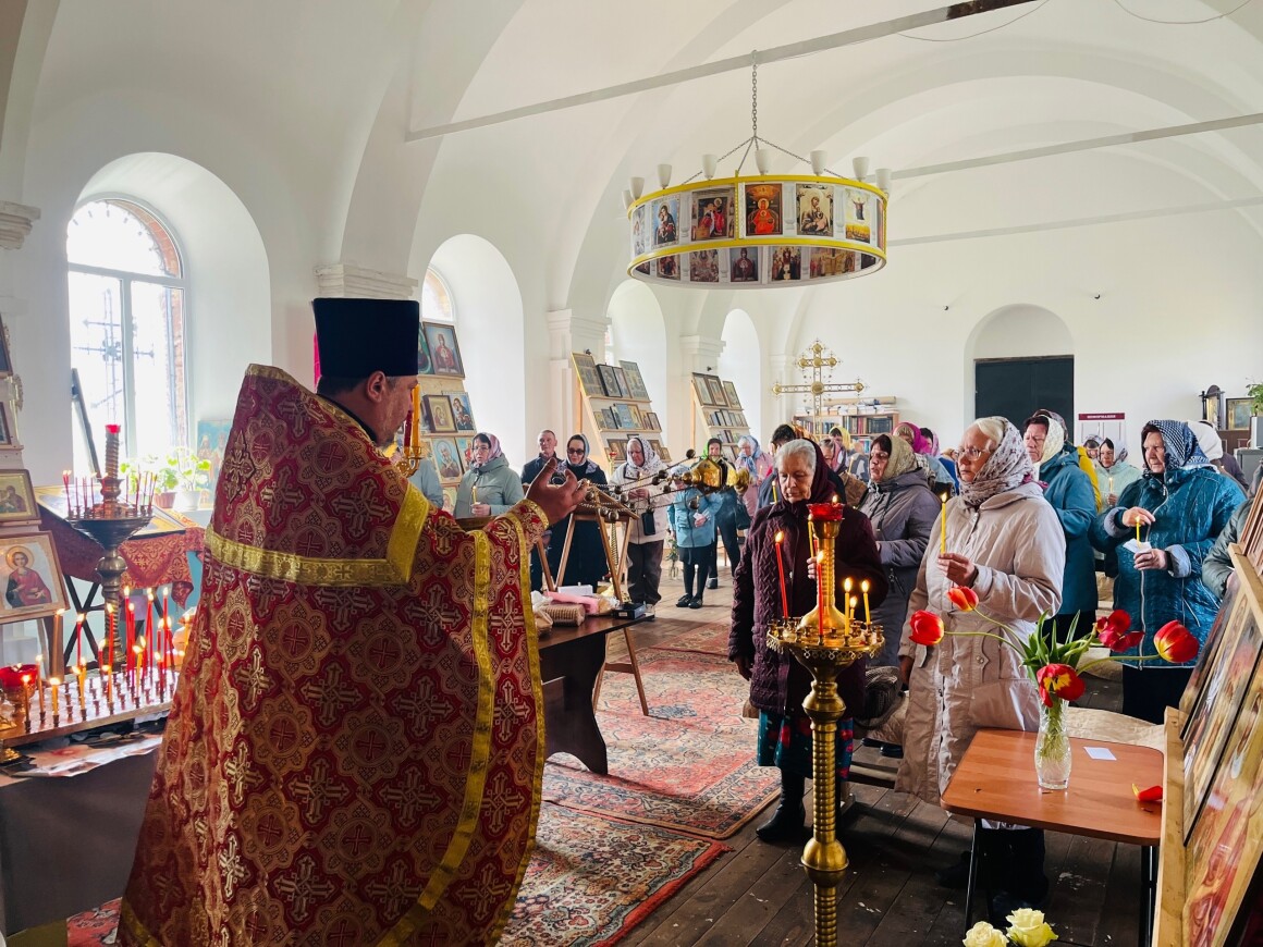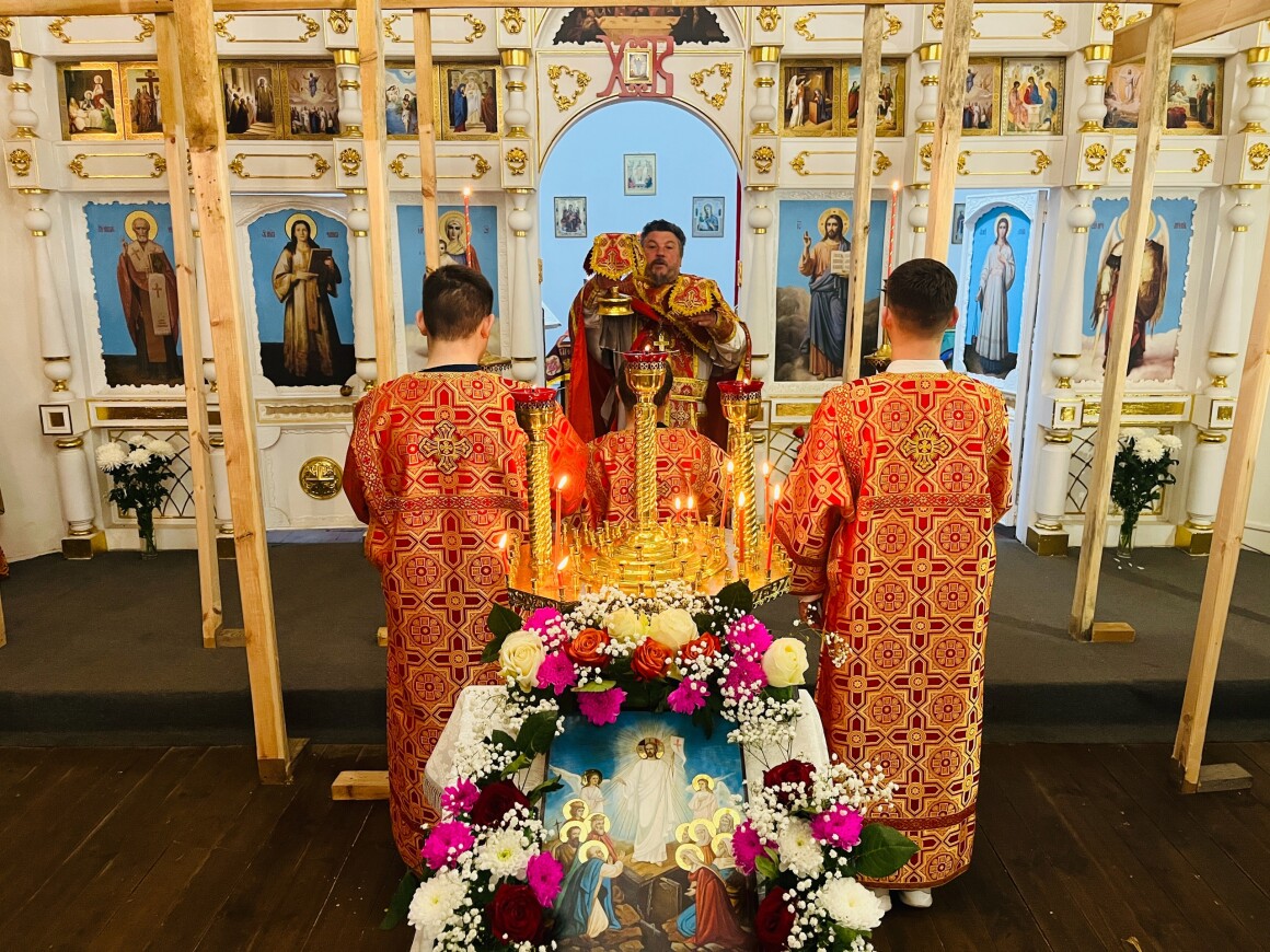 23.04.2025 год. ХРИСТОС ВОСКРЕСЕ Архиерейское богослужение в Успенском храме п. Касторное в среду Светлой седмицы.