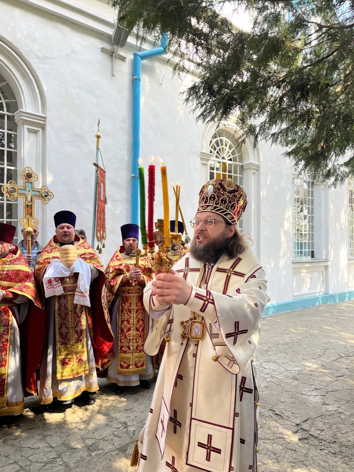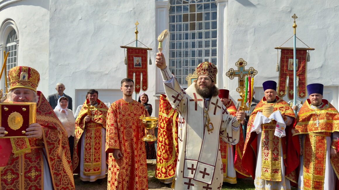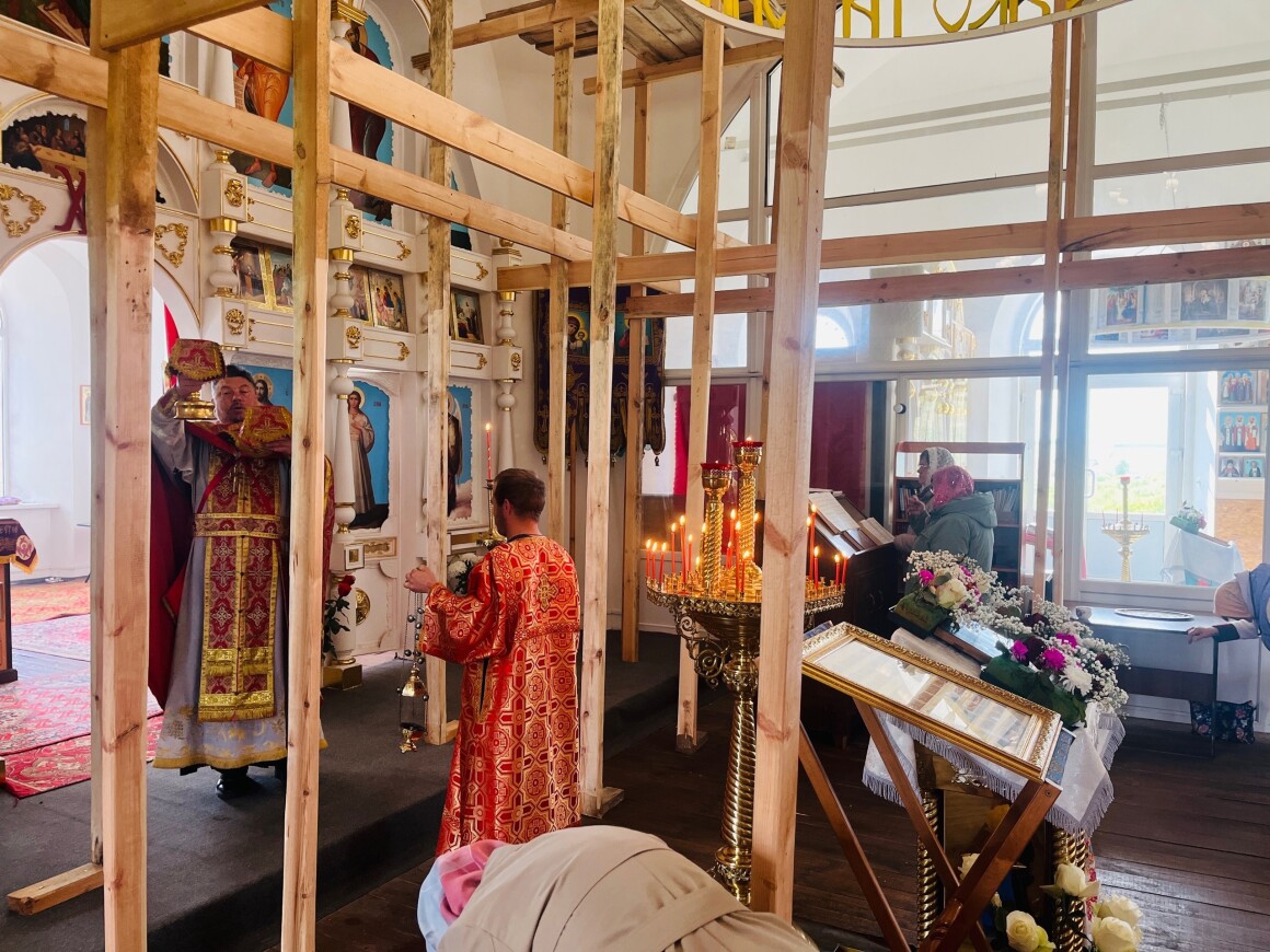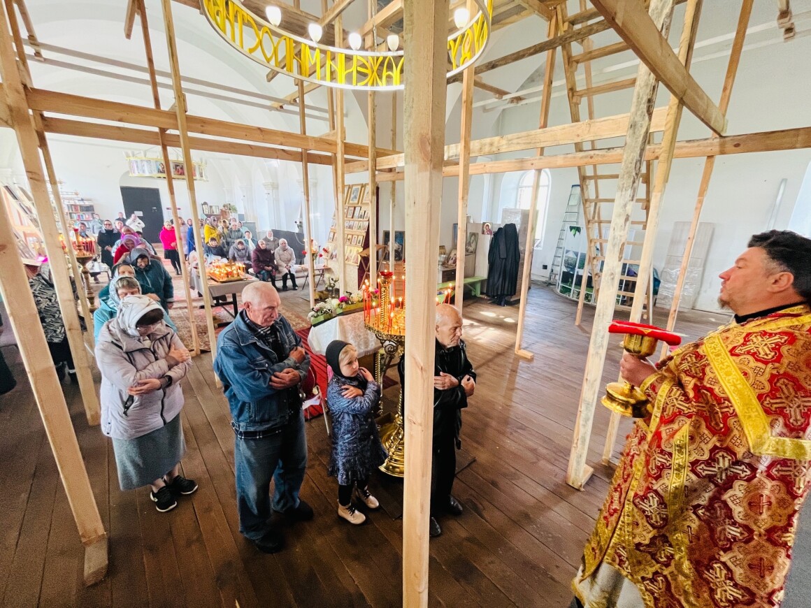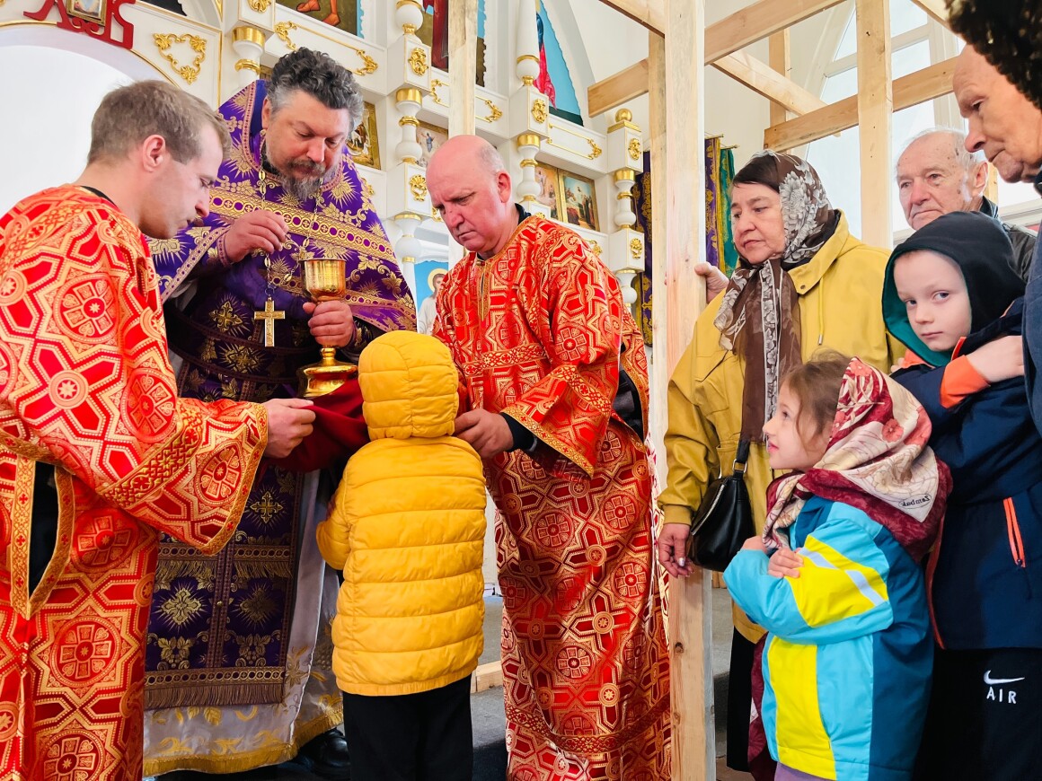 23.04.2025 год. ХРИСТОС ВОСКРЕСЕ Архиерейское богослужение в Успенском храме п. Касторное в среду Светлой седмицы.